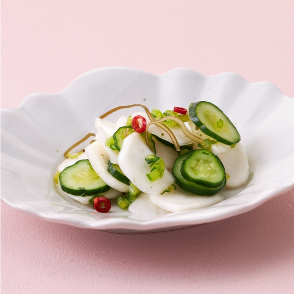 やわらかな小かぶと胡瓜のやさしいうす塩味のシンプルな浅漬です。